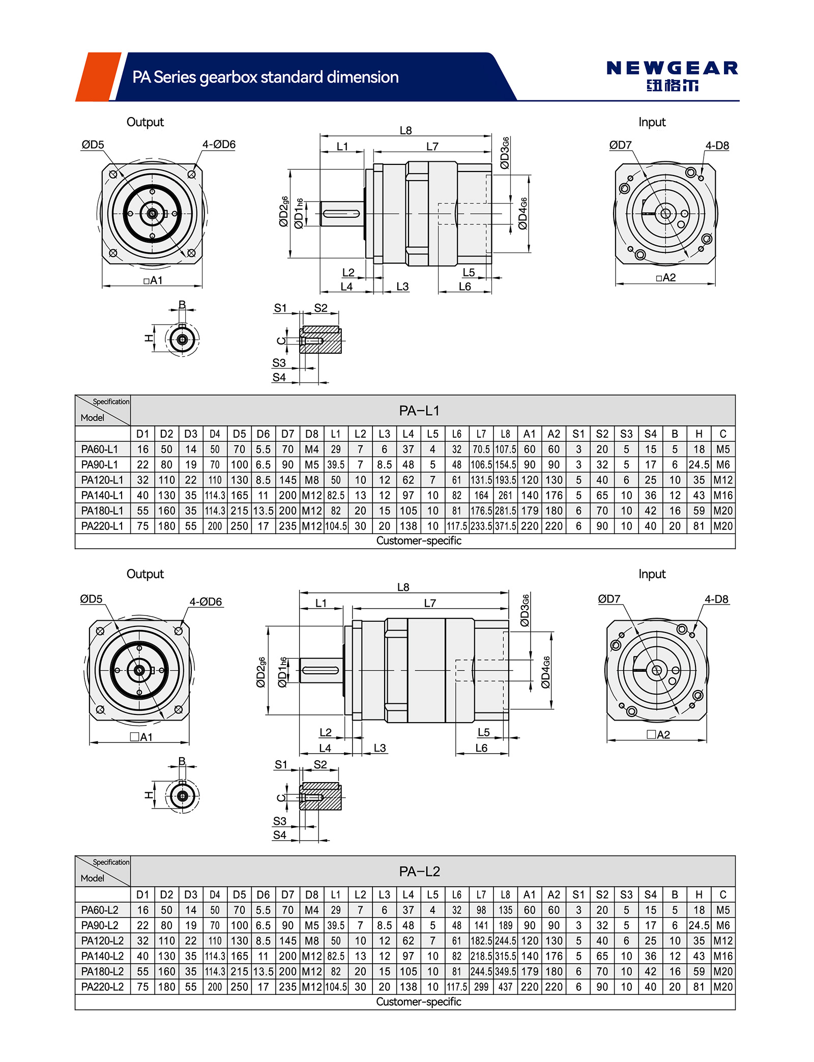 | Technische Parameter | Modellreihe | PA60 | PA90 | PA120 | PA140 | PA180 | PA220 | ||